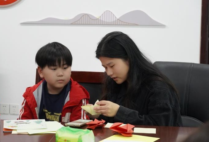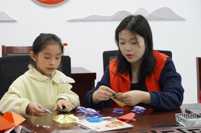 活动现场,学生党支部成员以“迎国庆、强担当”为核心主题,耐心引导孩子们展开创作。围绕“爱国符号”“担当象征”“红色记忆”三大类别,学生党支部成员手把手教孩子们折制国旗、五角星、天安门等承载爱国情怀的作品,用船帆、灯塔、拳头等折纸形象诠释责任与信念,还通过简化的长征路线示意图、党徽等折纸作品,向孩子们讲述党史小故事,让红色精神在趣味创作中悄然传递。