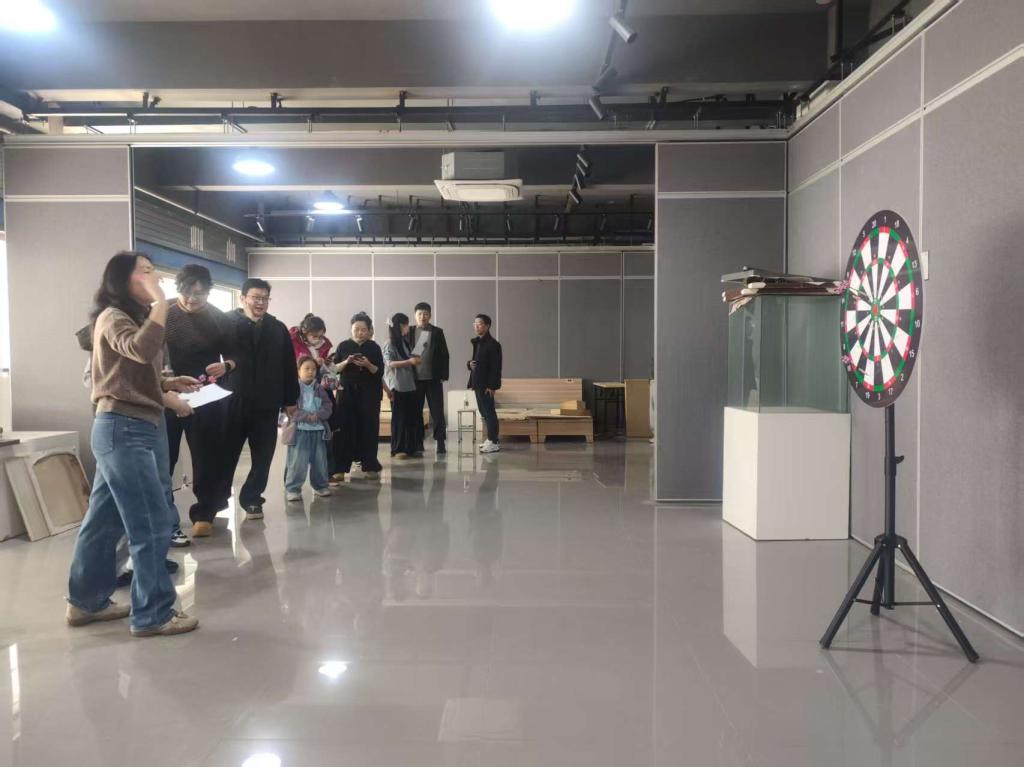 3 月11日下午,活动在学院八号楼二楼正式拉开帷幕。“正中靶心” 项目前,教职工们依次登场,手持飞镖凝神瞄准靶心,手腕轻扬间精准投掷。有的稳扎稳打、步步为营,每一次命中高分区域都引来阵阵喝彩,飞镖破空的轻响与欢声笑语交织,既展现了沉着专注的竞技状态,更在轻松互动中传递了快乐,成为活动中一道充满活力的风景线。“趣味套圈” 前,大家排起整齐的队伍,凝神聚力、瞄准目标,让现场氛围愈发热烈。“快乐羽毽” 项目中,教职工们都身姿轻盈、动作灵活,羽毛在空中划出优美的弧线,踢出了健康与活力。“速度乒乓”、“临门一脚” 则充满了惊喜与欢乐,一张张笑脸洋溢着满满的幸福感。