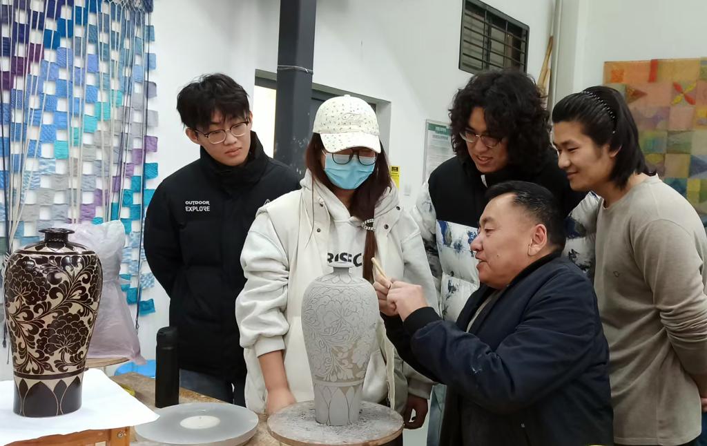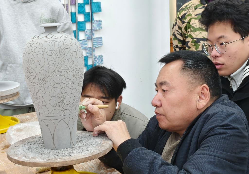 为深入推动陶瓷传统手工技艺的传承与发展,深化学生对北方民间陶瓷装饰艺术的理解,我院于2026年3月17日上午,特邀磁州窑非遗传承人、河南省陶瓷艺术大师白增武老师,在学院陶艺工作室举办题为“磁州窑刻划花装饰工艺制作”的专题讲座与技艺传授活动。